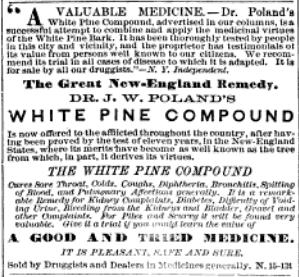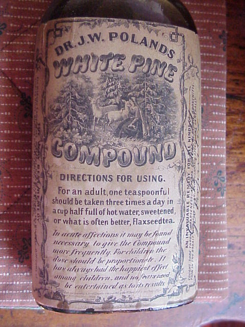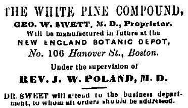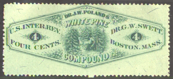 The cancel is attributed to “Poland’s White Pine Compound” sold by Dr. G. W. Swett of Boston Mass. I’ve never seen or heard of one actually on bottle or document though in order to verify this.