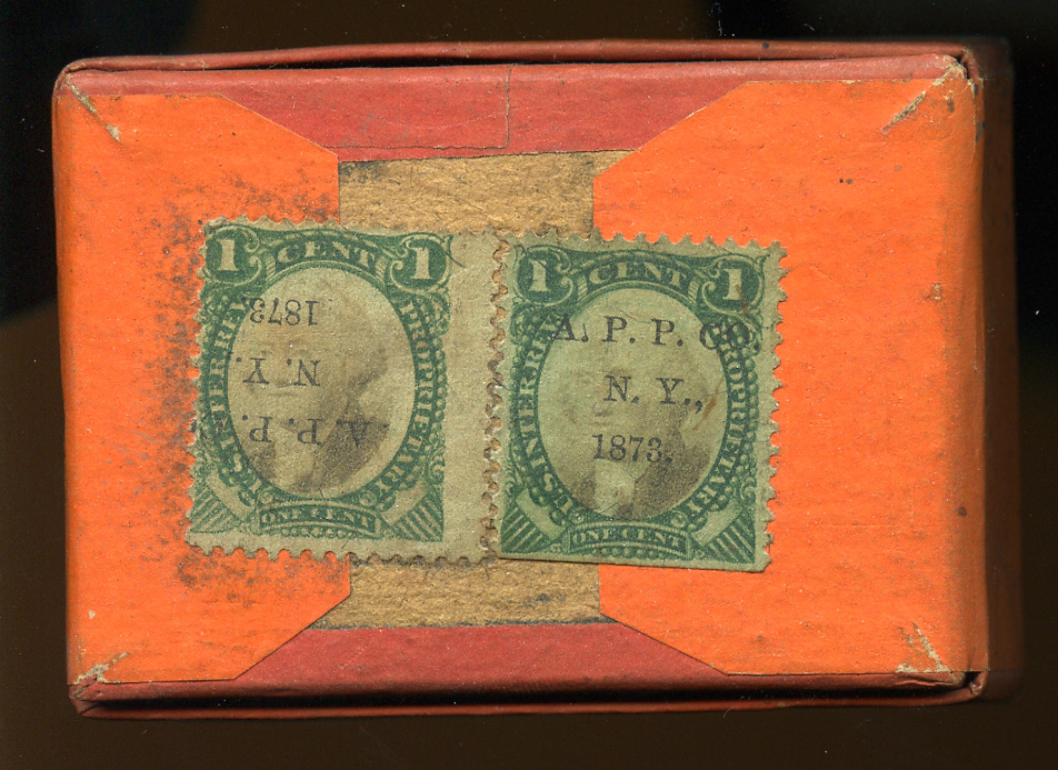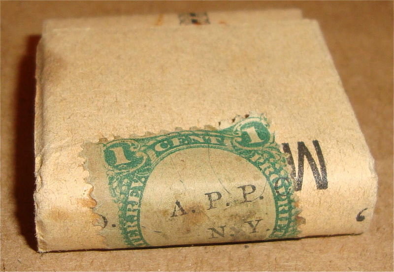 The only other item I have is the one below, still sealed, and also from eBay. One of the neat aspects about it is that although two stamps are affixed, one has the cancel inverted (it also appears that one of the stamps may be violet paper and the other green paper, so both RB1a and RB1b on the same item).