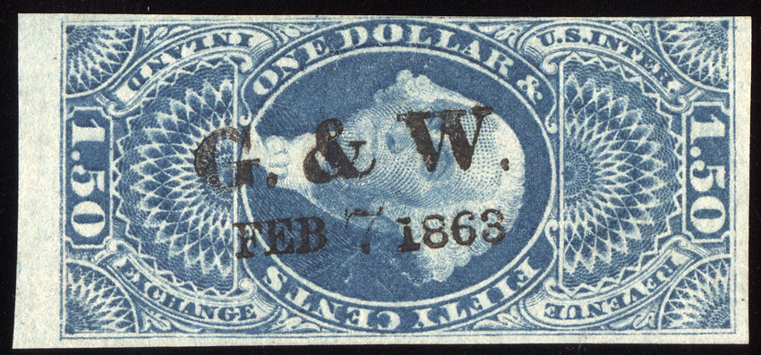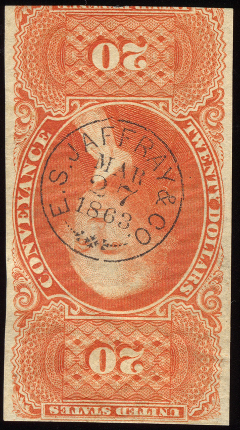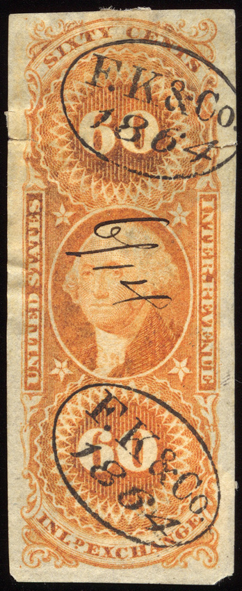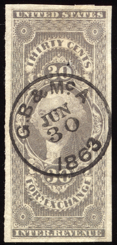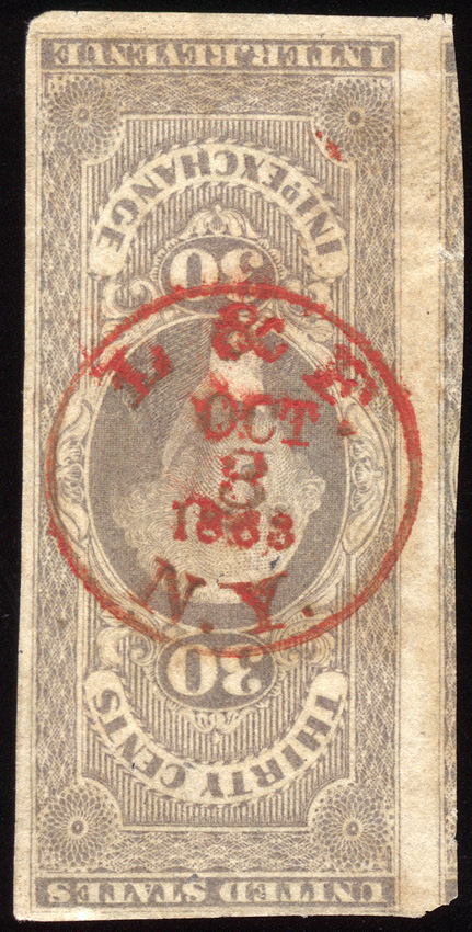 I’ve finished imaging the revenues I picked up this past weekend at COMPEX. No major finds but a few nice pieces. I did send 2 stamps that I bought on extension to the PF on Monday, and if they end up being good I’ll post them. The one item in particular is about the most aesthetically pleasing example of its type that a cancel collector will find, as the vast majority are found with manuscript cancels.