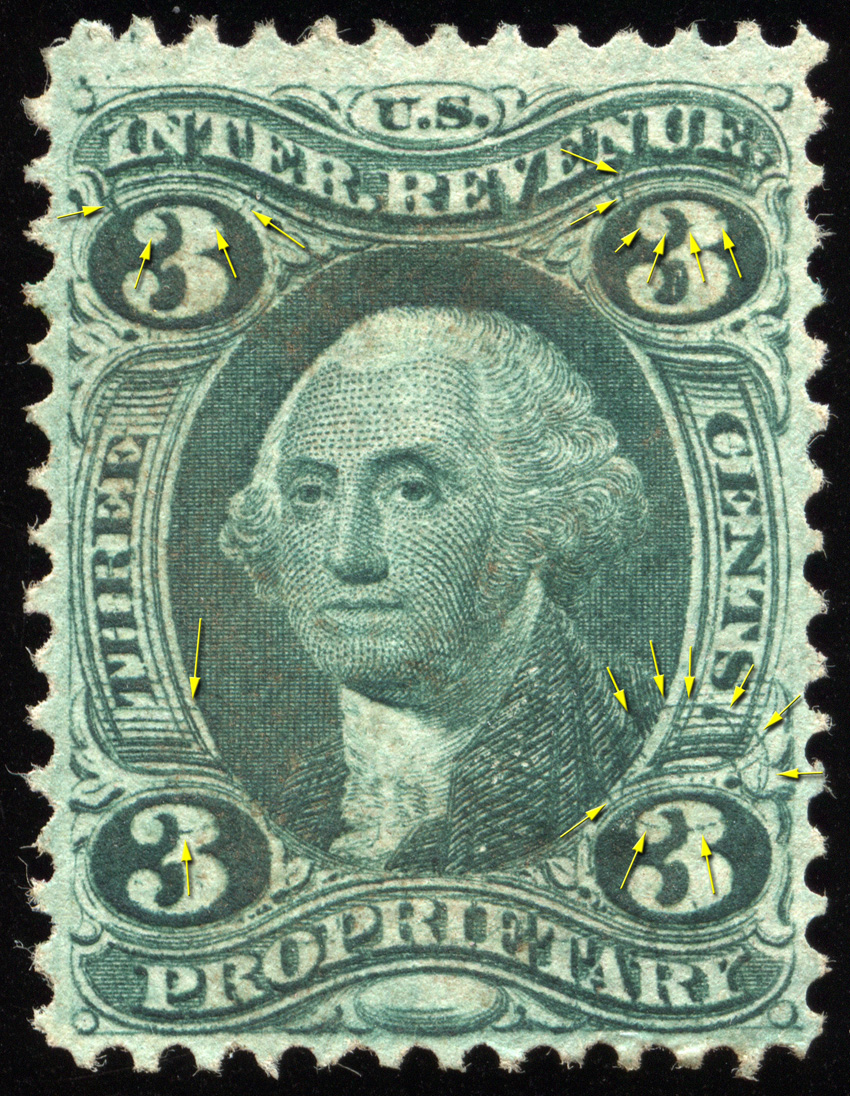 I just got this one in the mail today, a very scarce R18c double transfer commonly referred to as ‘eggs north’, where the outlines of the numeral ovals are transposed to the north.