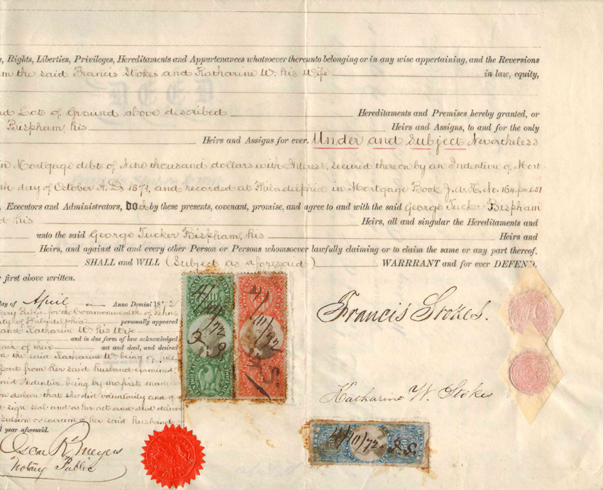- Single stamp on a Phildelphia vellum deed, in the collection of Michael Mahler.
