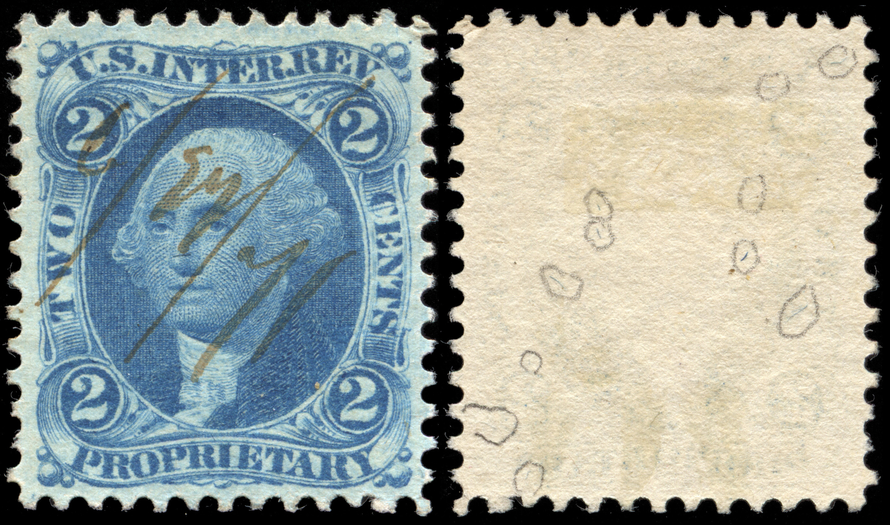 Included on those sheets was a lovely example of Scott # R13d, one of the tougher silk papers, less common than the $175 catalog value implies. So as I’m imaging it for the website I realize that it’s not just a silk paper. It’s also an unlisted double transfer.