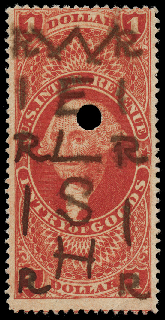 I’ve had a slight change in perspective on the stamp below. I initially thought it was possibly the initials of the signatories to the document the stamp originally was on, but instead of reading it left to right, try reading it top to bottom. What you potentially end up with is:
