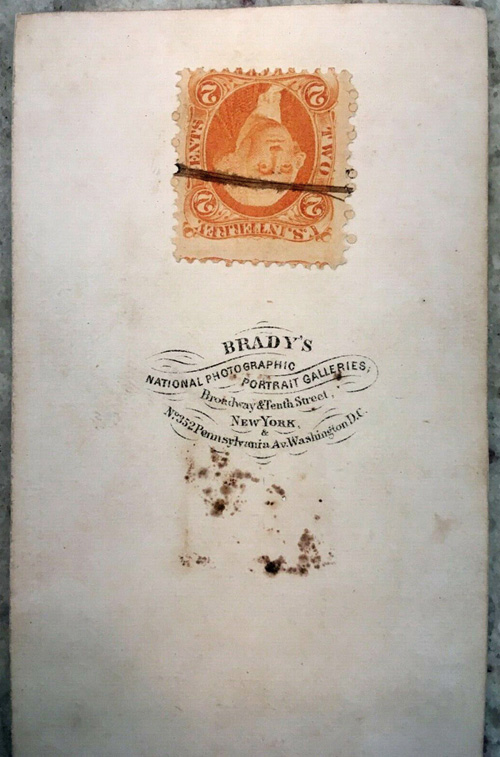 Now the next question is given that Brady CDVs can also be found with front marks of “Brady” and “New York” in the same font as the script cancels, does that mean that lurking somewhere out there is a “New York” script cancel?… to my knowledge, none have been reported… yet. I need to do some more research to determine whether the Brady-New York front mark combination was used during the taxable period, or if it just came later.