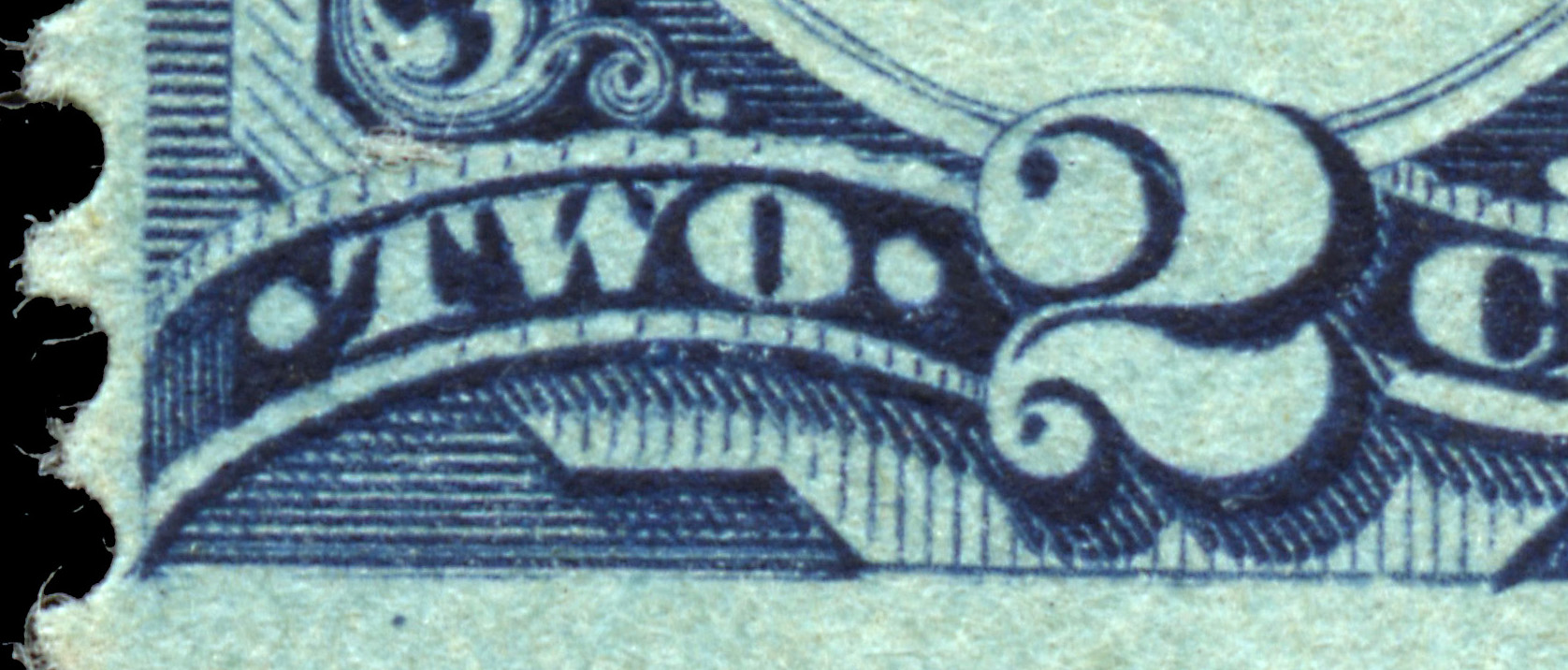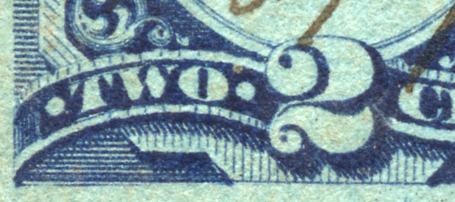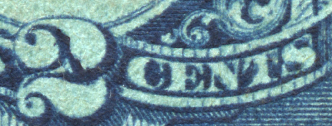 6. A tool gouge or plate crack in the numeral 2 at bottom, but also some anomalies in the NTS of CENTS.