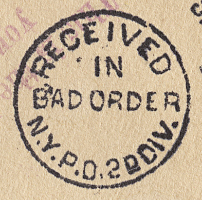 2. A “RECEIVED IN BAD ORDER” circular handstamp.