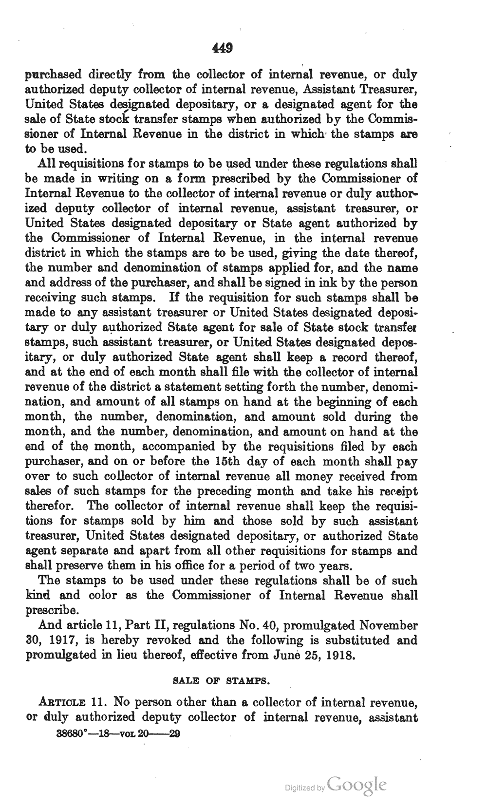 If I’m reading correctly, the earliest possible use is June 25, 1918, per Treasury Decision 2741, dated same. However, presumably there would have been some lag in preparing the overprinted stamps. So it will be interesting to see whether there are uses prior to the 1919 fiscal year beginning July 1, 1918.