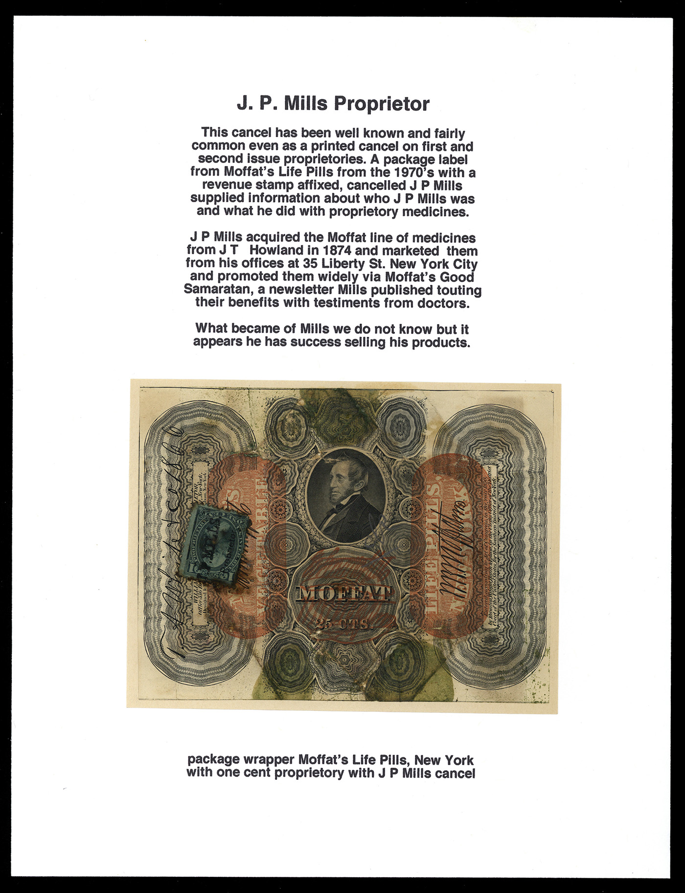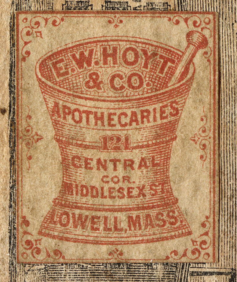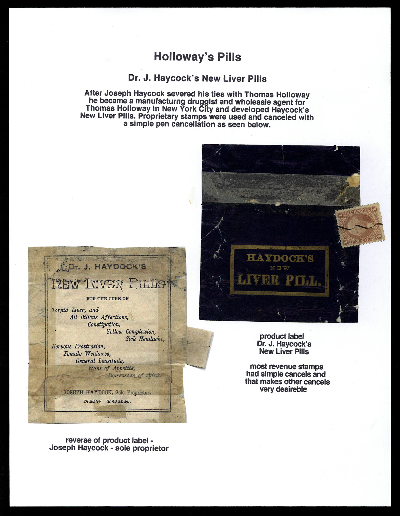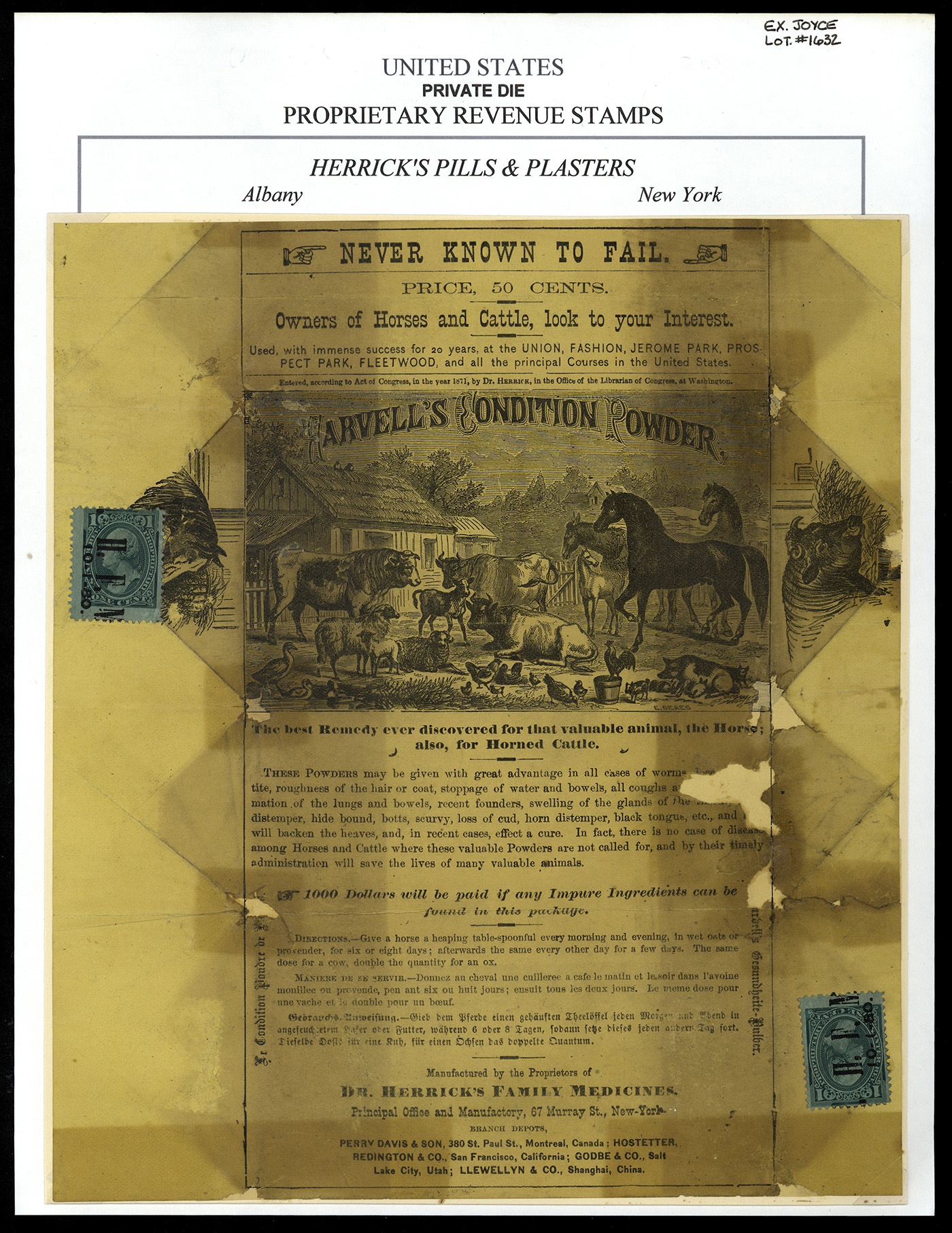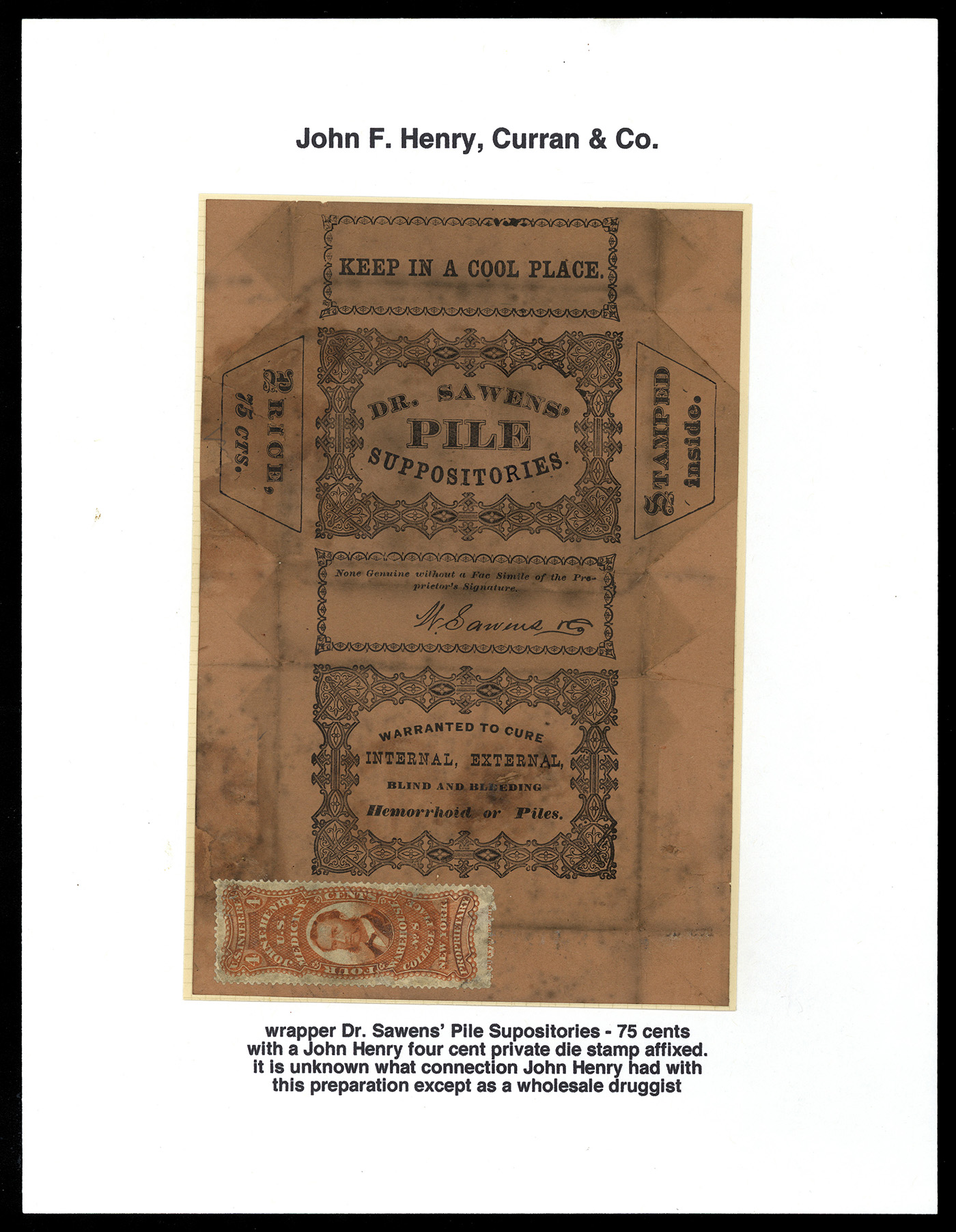 The medicine labels/packaging with revenues affixed are particularly cool, IMO… especially #26, which also features a label from E. W. Hoyt & Co. The large-format retailer printed cancel shown on the revenue stamp is as of now unattributed.