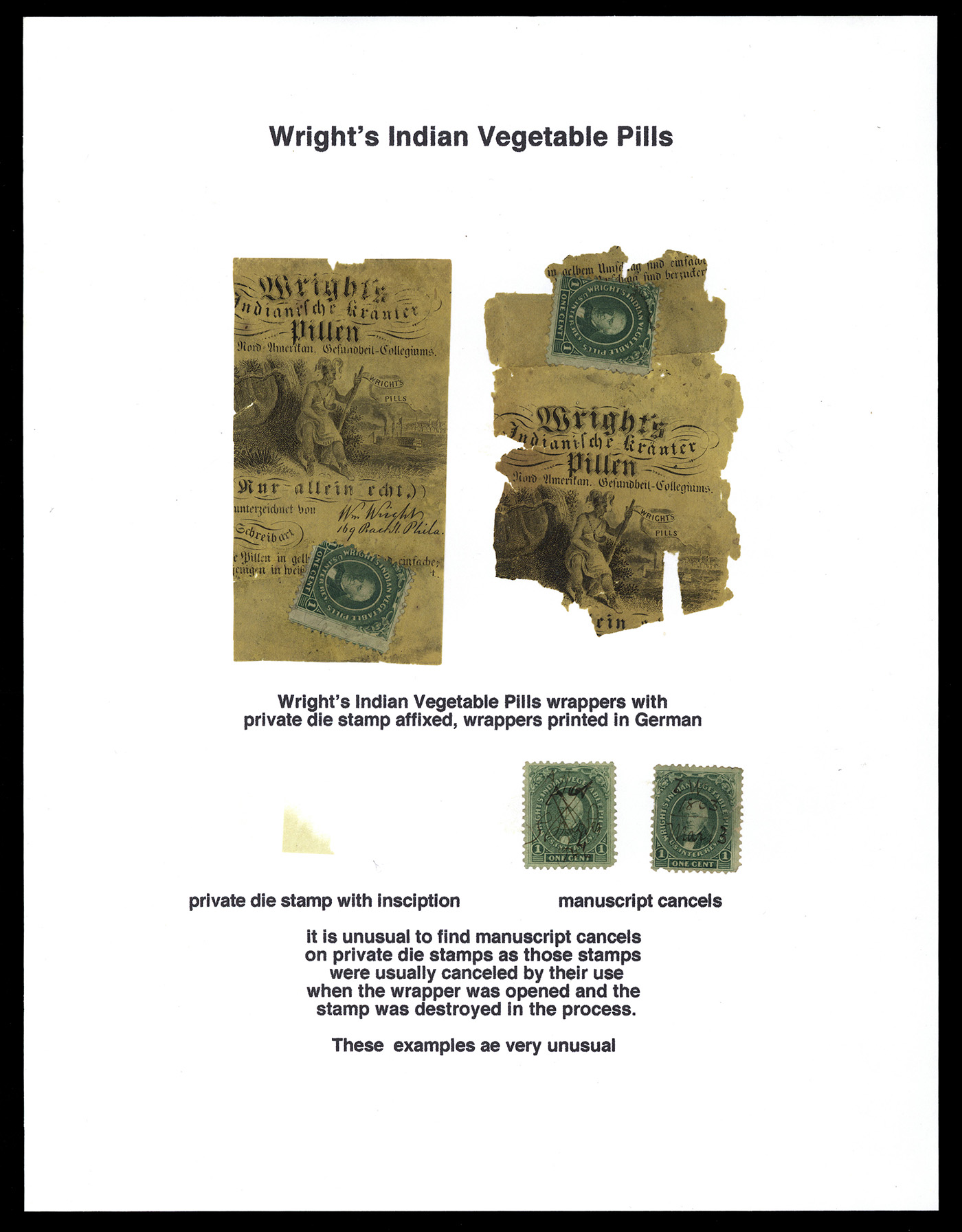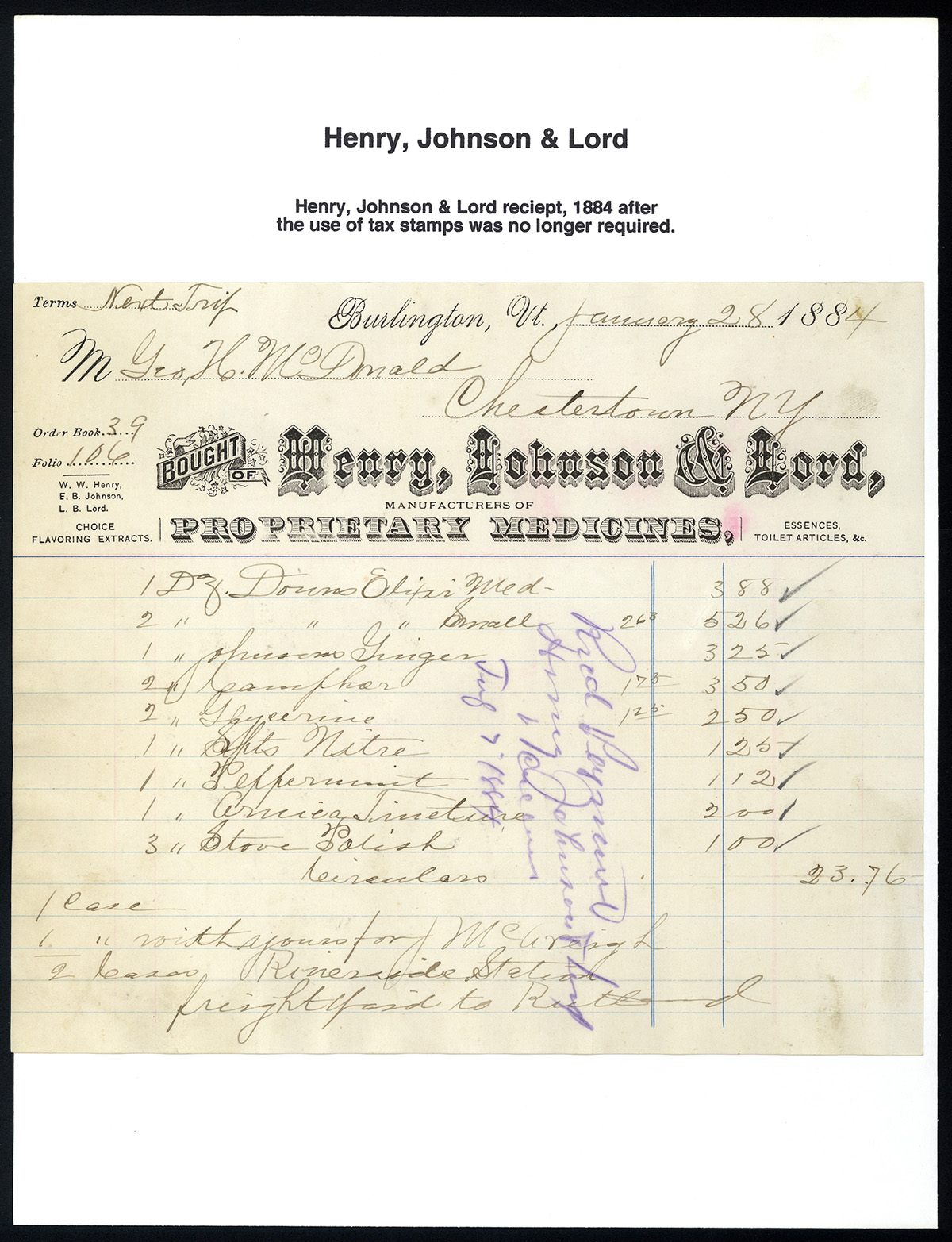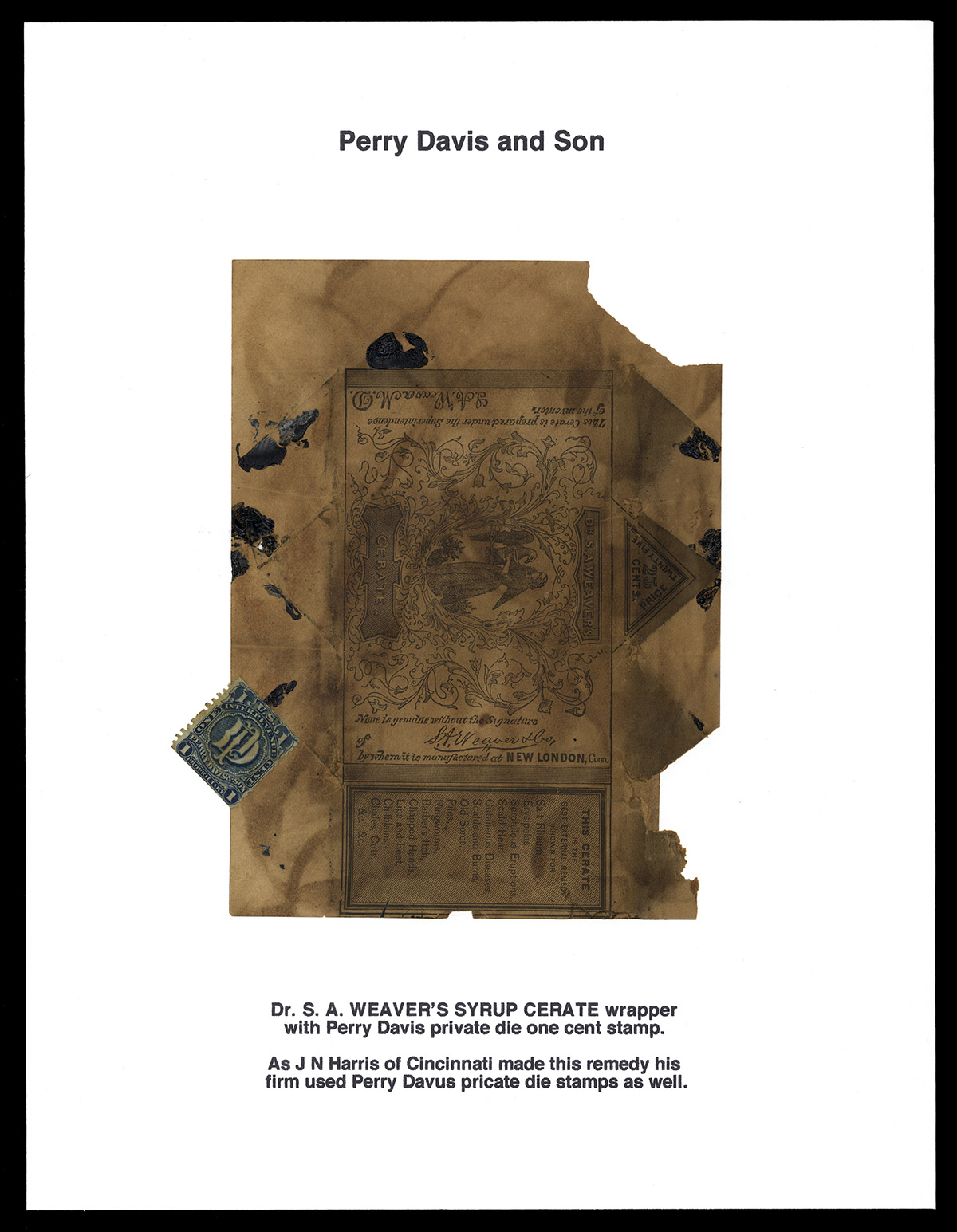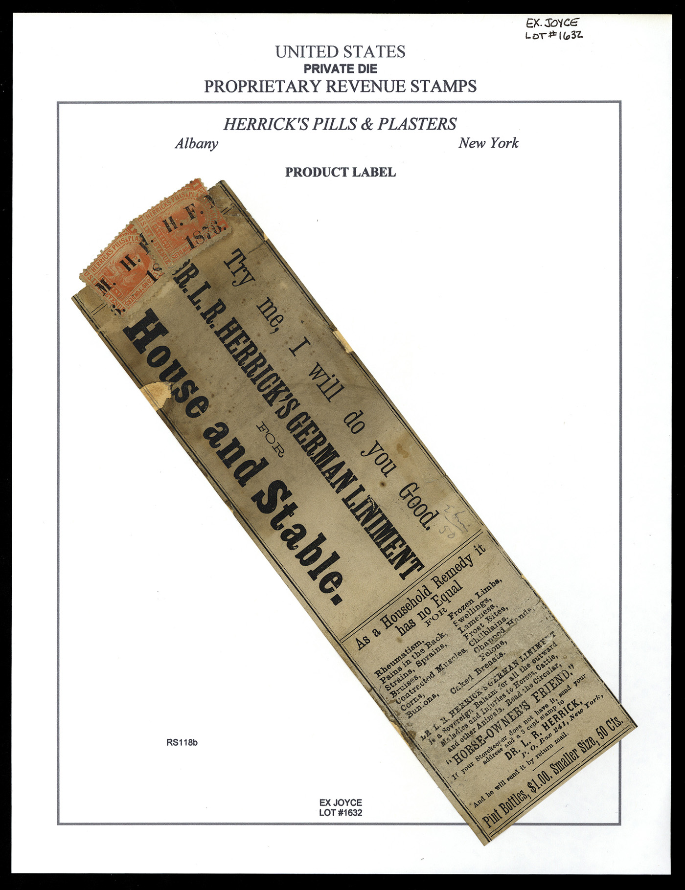 The medicine labels/packaging with revenues affixed are particularly cool, IMO… especially #26, which also features a label from E. W. Hoyt & Co. The large-format retailer printed cancel shown on the revenue stamp is as of now unattributed.