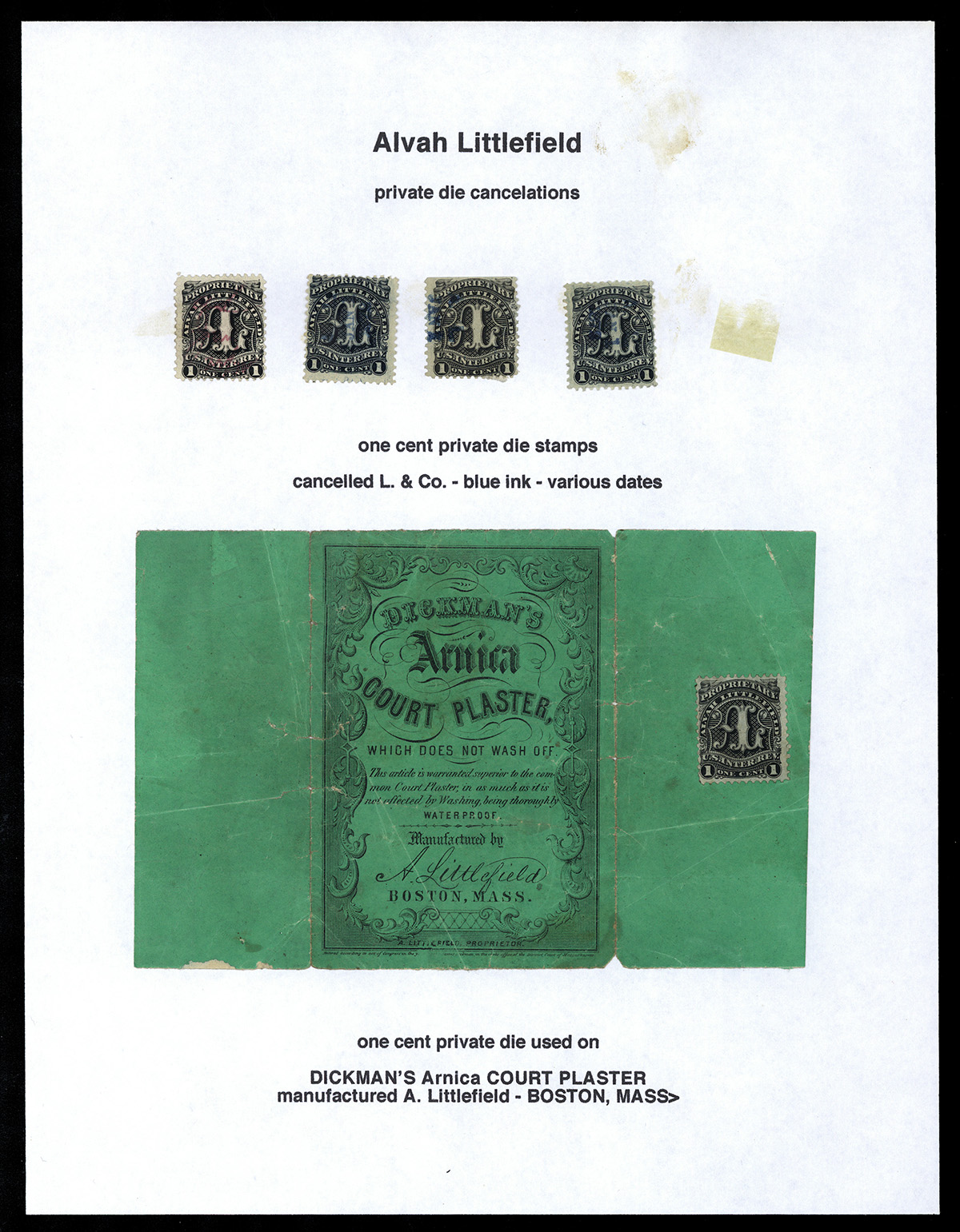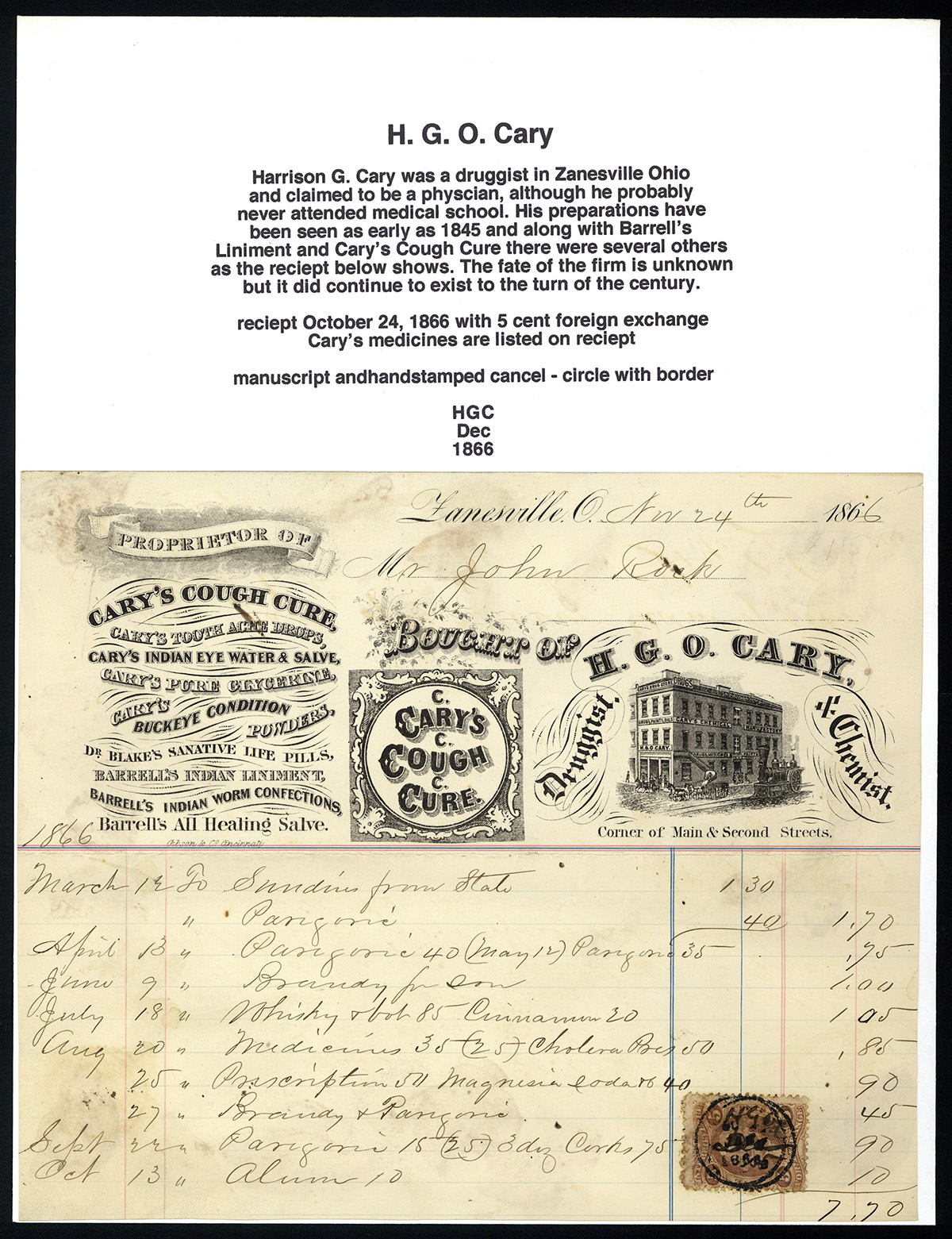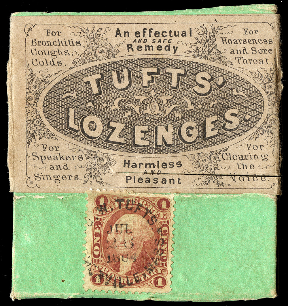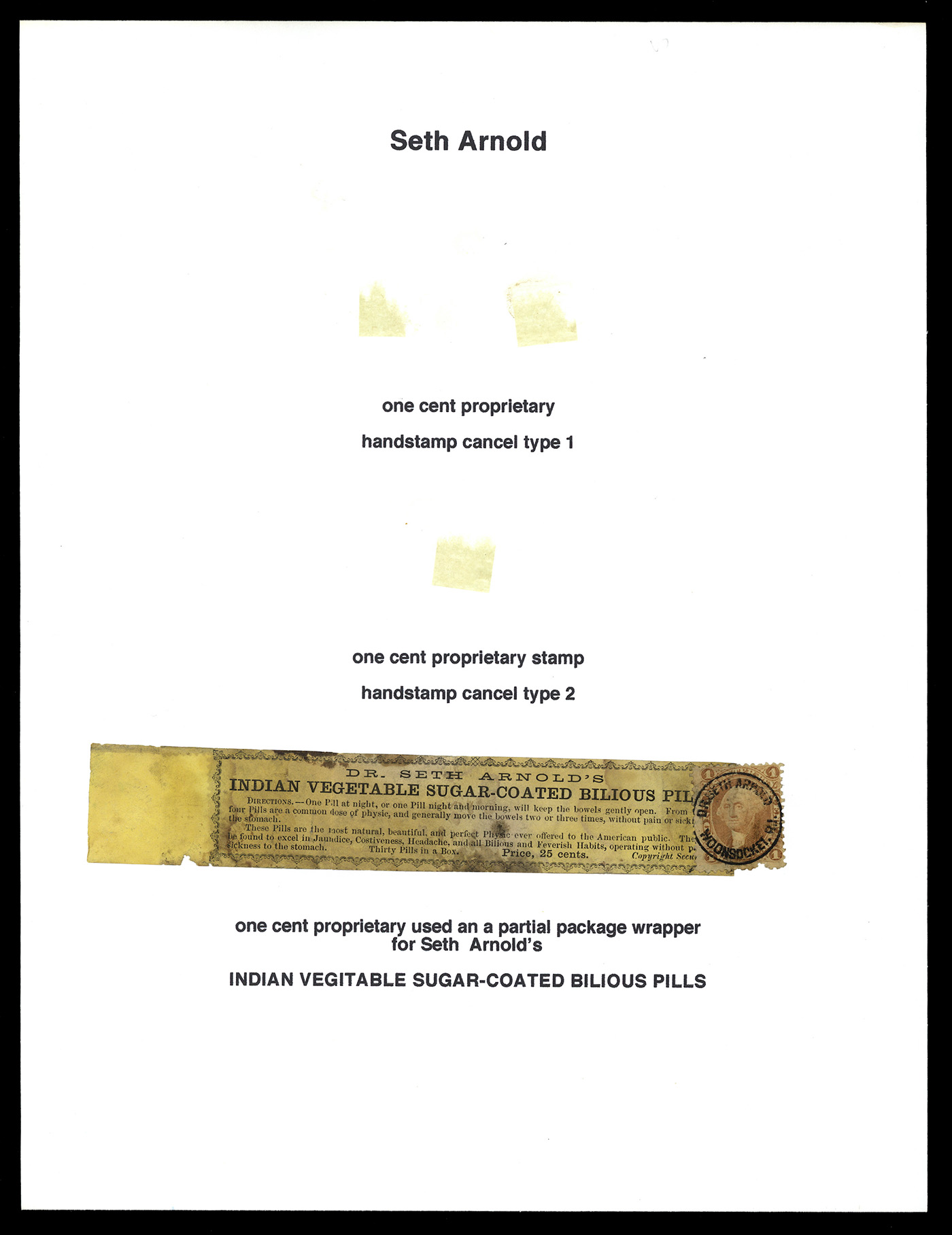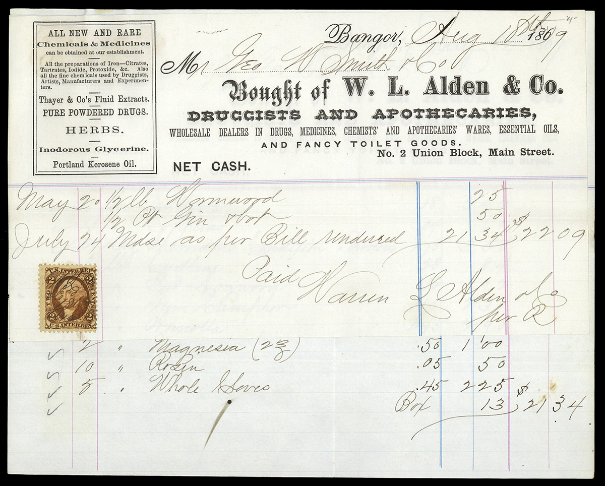 The medicine labels/packaging with revenues affixed are particularly cool, IMO… especially #26, which also features a label from E. W. Hoyt & Co. The large-format retailer printed cancel shown on the revenue stamp is as of now unattributed.