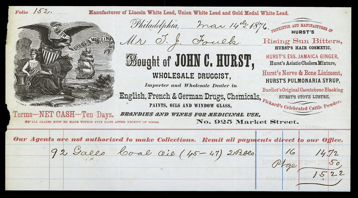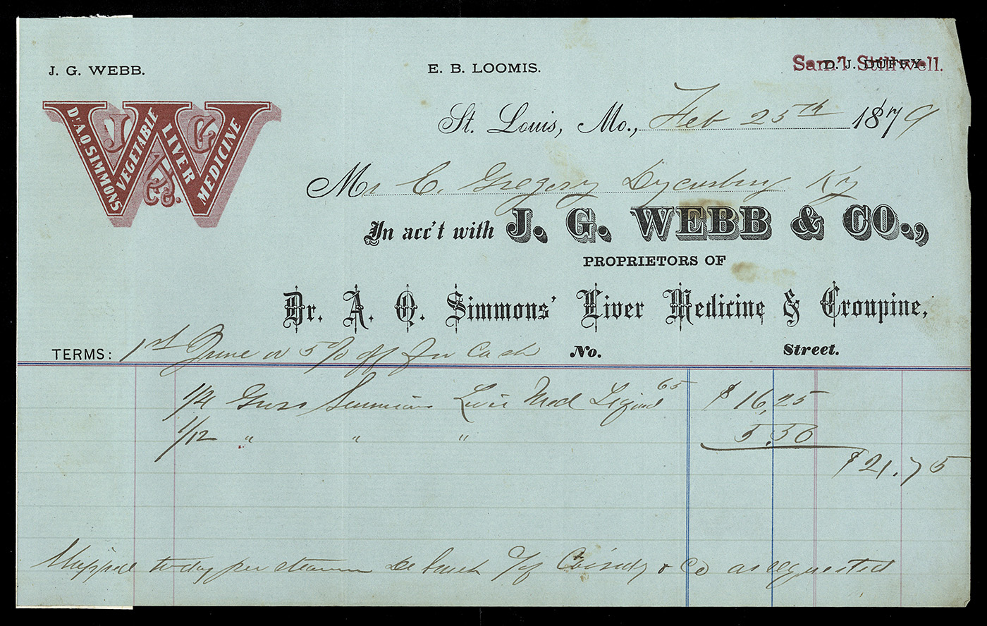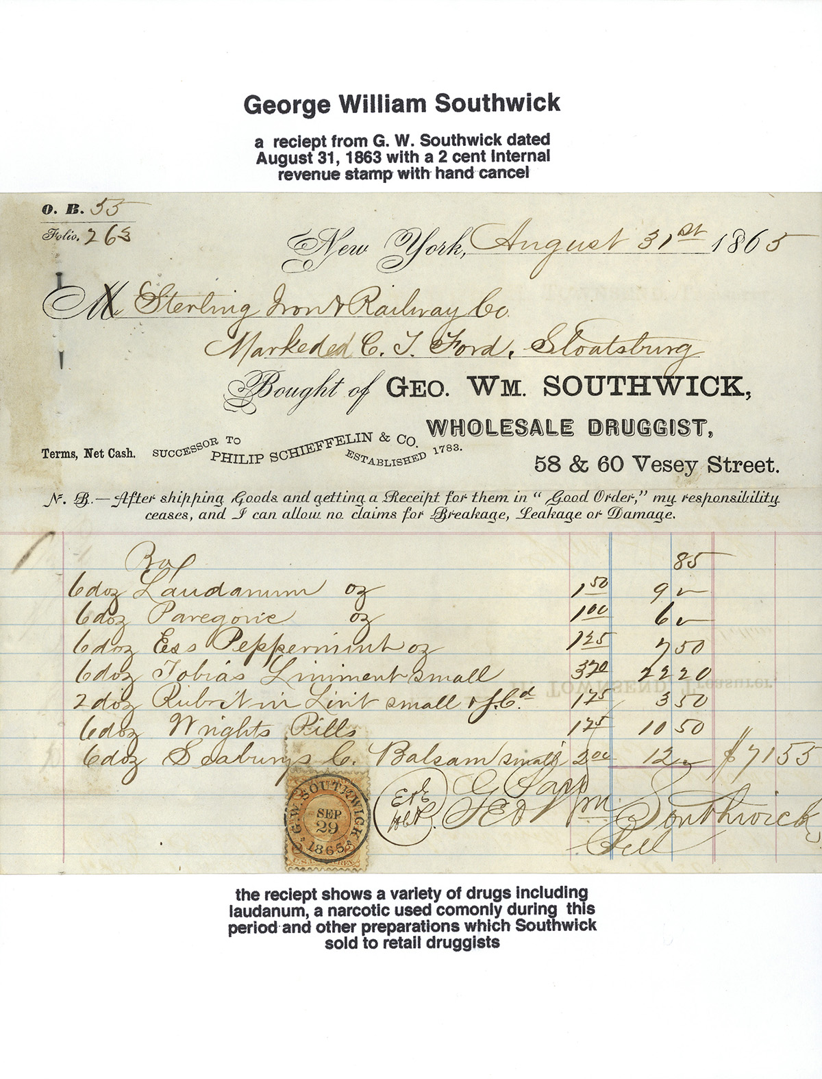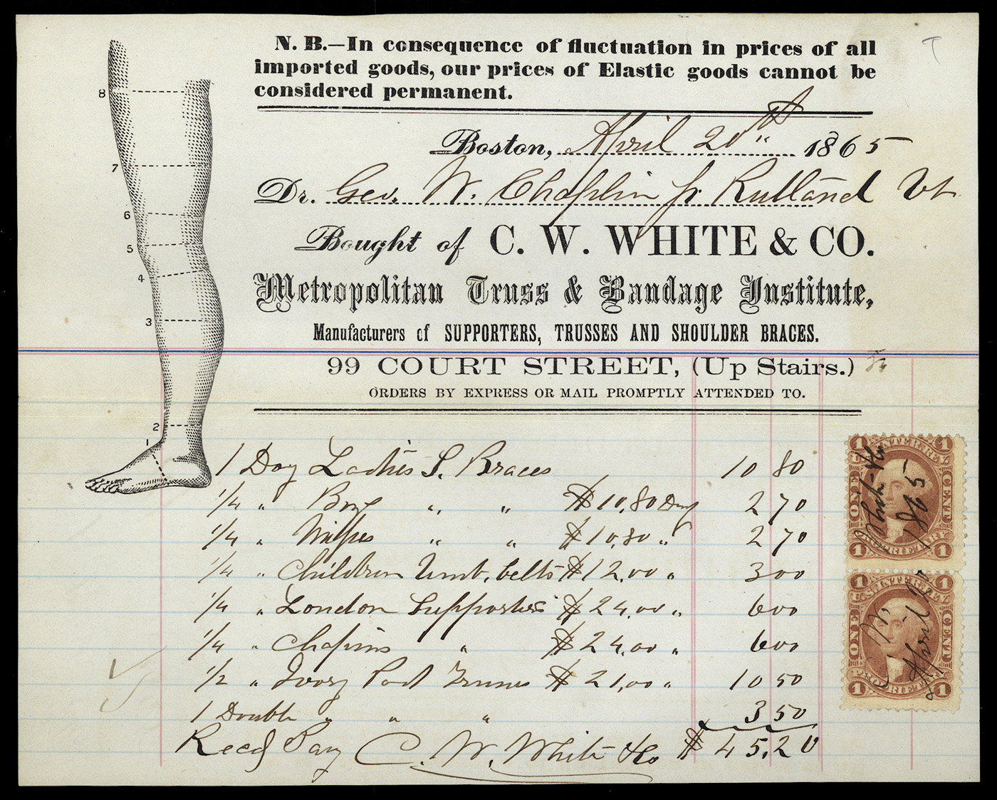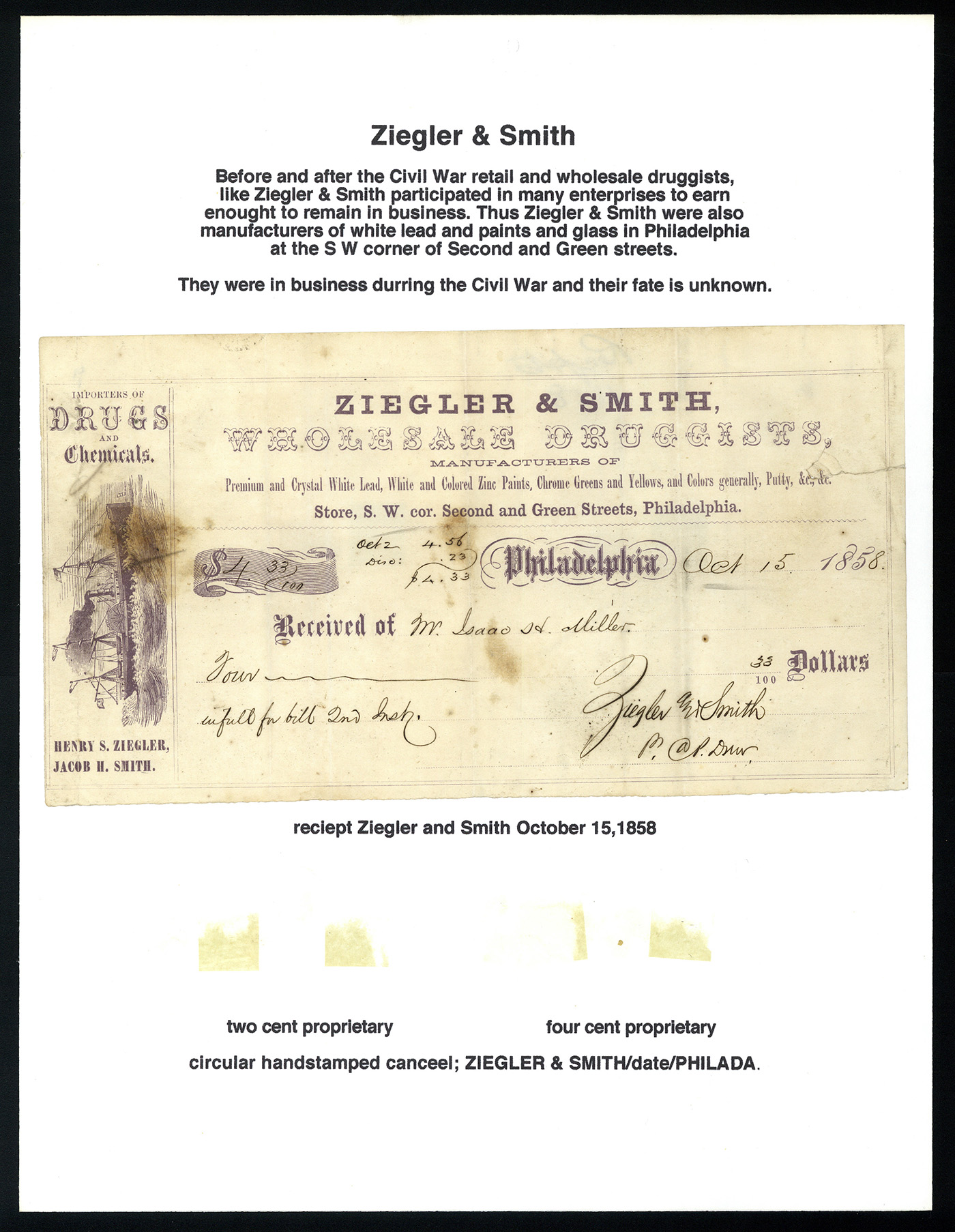 The medicine labels/packaging with revenues affixed are particularly cool, IMO… especially #26, which also features a label from E. W. Hoyt & Co. The large-format retailer printed cancel shown on the revenue stamp is as of now unattributed.