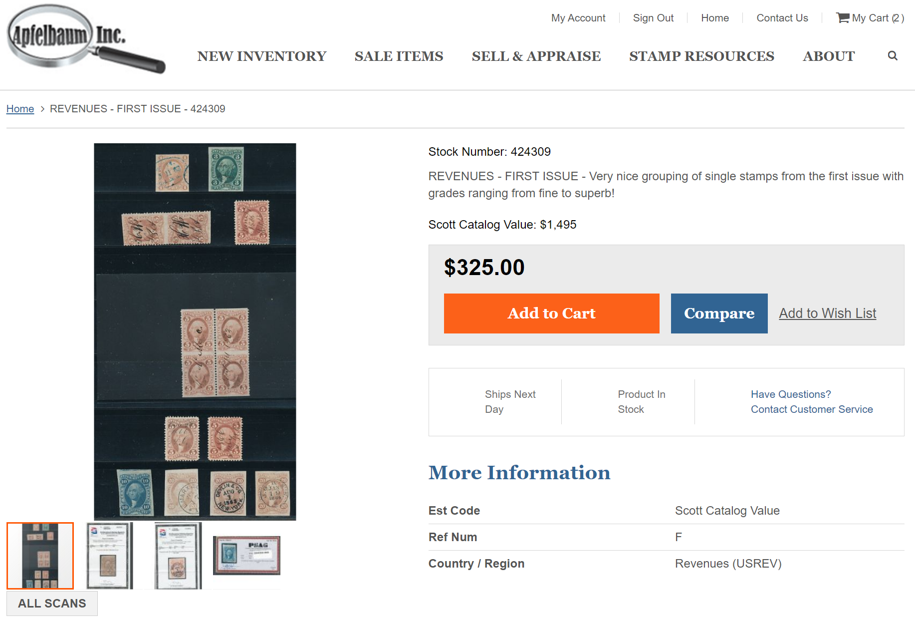 Fast forward to last week. Apfelbaum, in their latest inventory refresh, has moved away from bulk lots and has started listing U.S. and world singles, sets, and small lots, some of them some fairly big-ticket items.