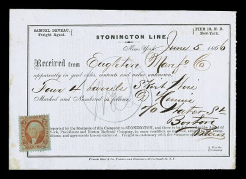 There is also a bill of lading from “The Stonington Line” which also received goods from the Eagleton Manufacturing Co. (Sorry for the poor image quality; it’s the best I’ve got.)