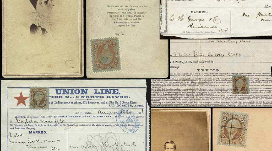 I can’t draw any conclusions from the dates on the New York and Philadelphia documents or the cancel dates on the individual stamps as to whether one preceded the other, and the Illinois CDVs are undated as to year. The only limiting factor as to the last is that CDVs were only taxed from August 1, 1864 through July 31, 1866, and the end of that window overlaps with the New York and Philadelphia uses of both R6e and R15e.
