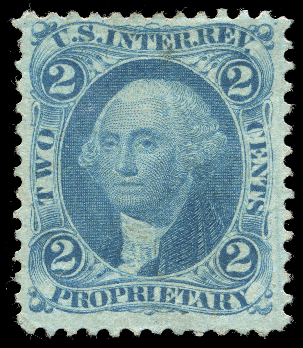 Contrast the portrait lines, especially the forehead, and corner elements with the following example R13c. It too is a double transfer, but the doubling is relegated to the perhiphery of the design. I use this as a comparison image, as it is a very crisply struck example of the stamp.