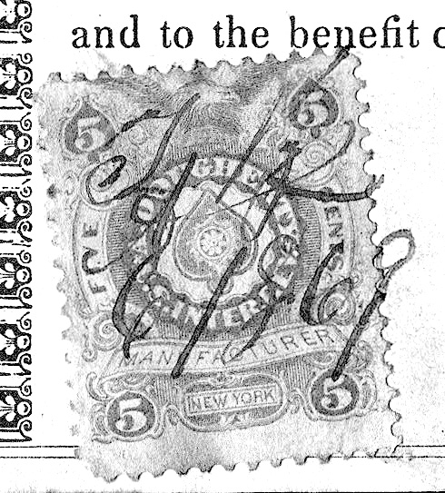 Andrew Dougherty Proprietary Revenue Stamp Used Improperly As Documentary In 1869