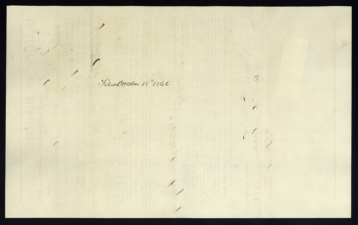 I ran the 3 stamps through ImageSleuth, and sure enough, the stamps were affixed after the fact, the initials being those of the original judge in question. It appears that all 3 documents had stamps affixed on the same date, presumably once they received stock, either January 7 or January 9, 1863… still earlier than the previously recorded date, just not as early as the document dates implied.