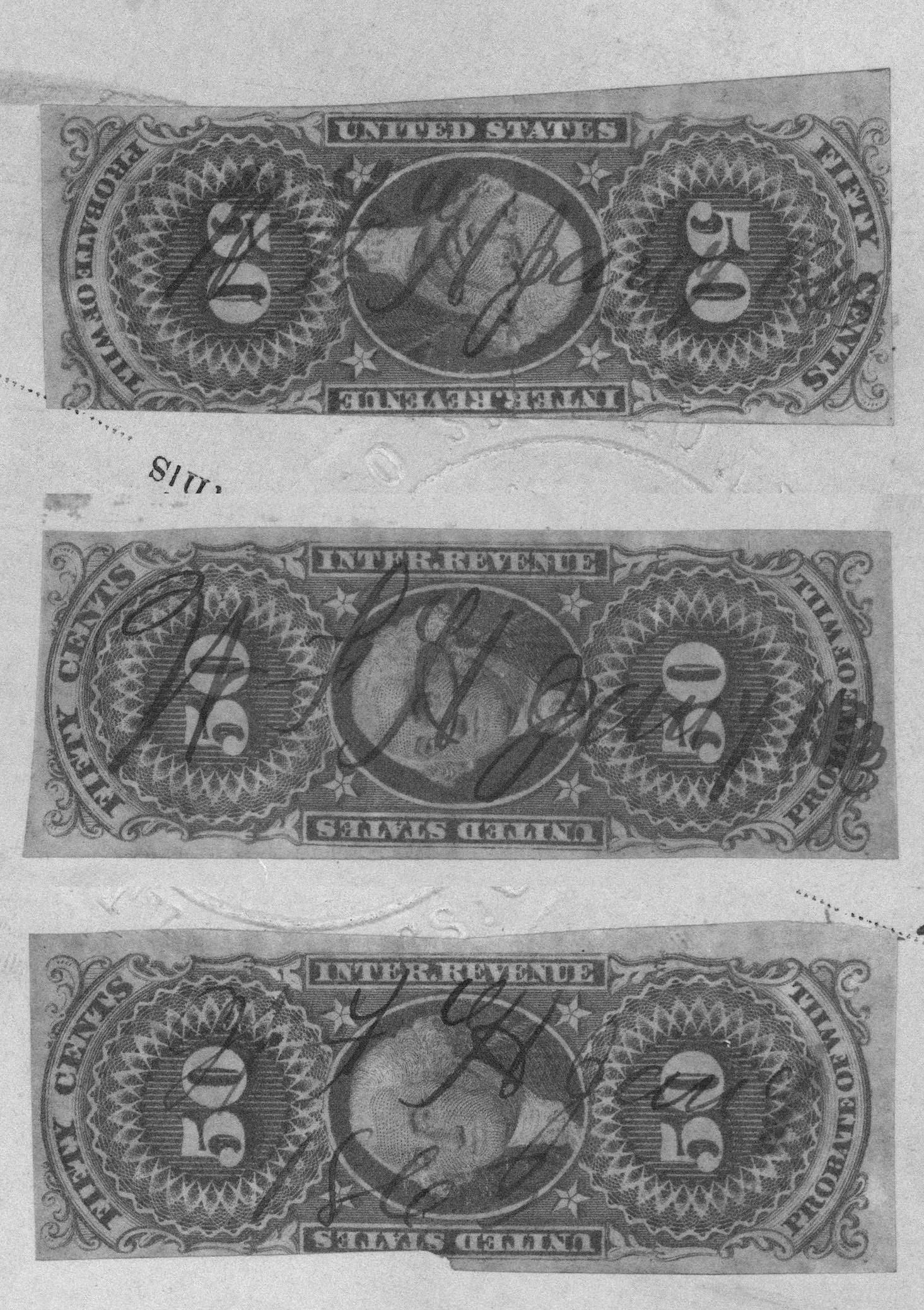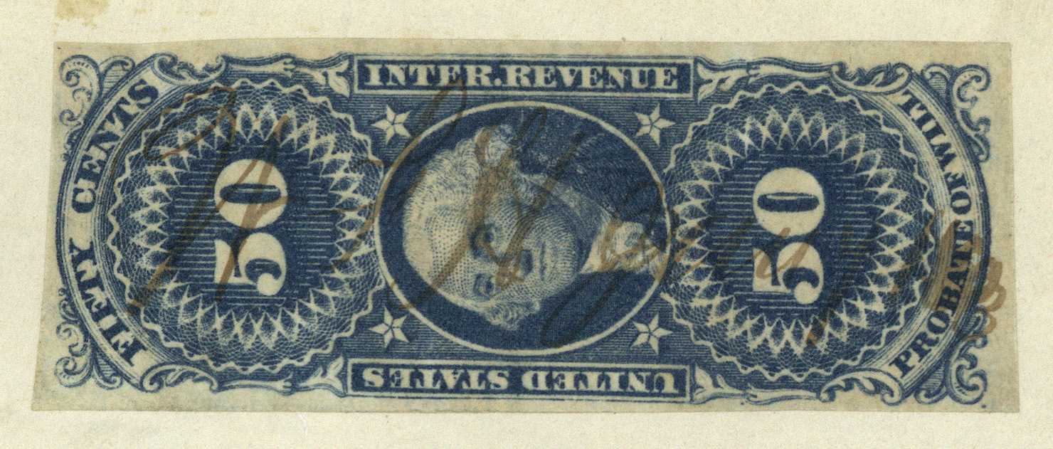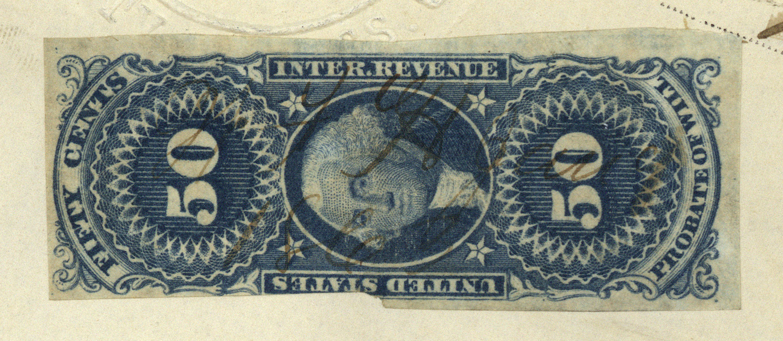 That book has the earliest reported Probate of Will EMU as January 12, 1863, so I was thinking “Wow! I’ve blown past that!” But then I figured “waitasec…” and took a look at The Boston Book, and per that source, the earliest delivery of 50-cent Probate of Will stamps took place on November 24, 1862… considerably after the dates in question, so I looked closer.