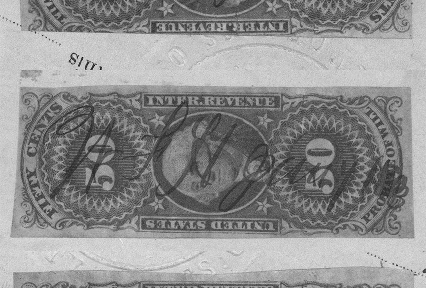That book has the earliest reported Probate of Will EMU as January 12, 1863, so I was thinking “Wow! I’ve blown past that!” But then I figured “waitasec…” and took a look at The Boston Book, and per that source, the earliest delivery of 50-cent Probate of Will stamps took place on November 24, 1862… considerably after the dates in question, so I looked closer.