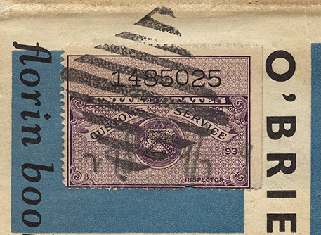 One of the more unusual uses I’ve seen of a baggage stamp. The tying cancel appears to be the norm, based upon other examples of the stamp I’ve seen, so no reason to believe it is contrived.