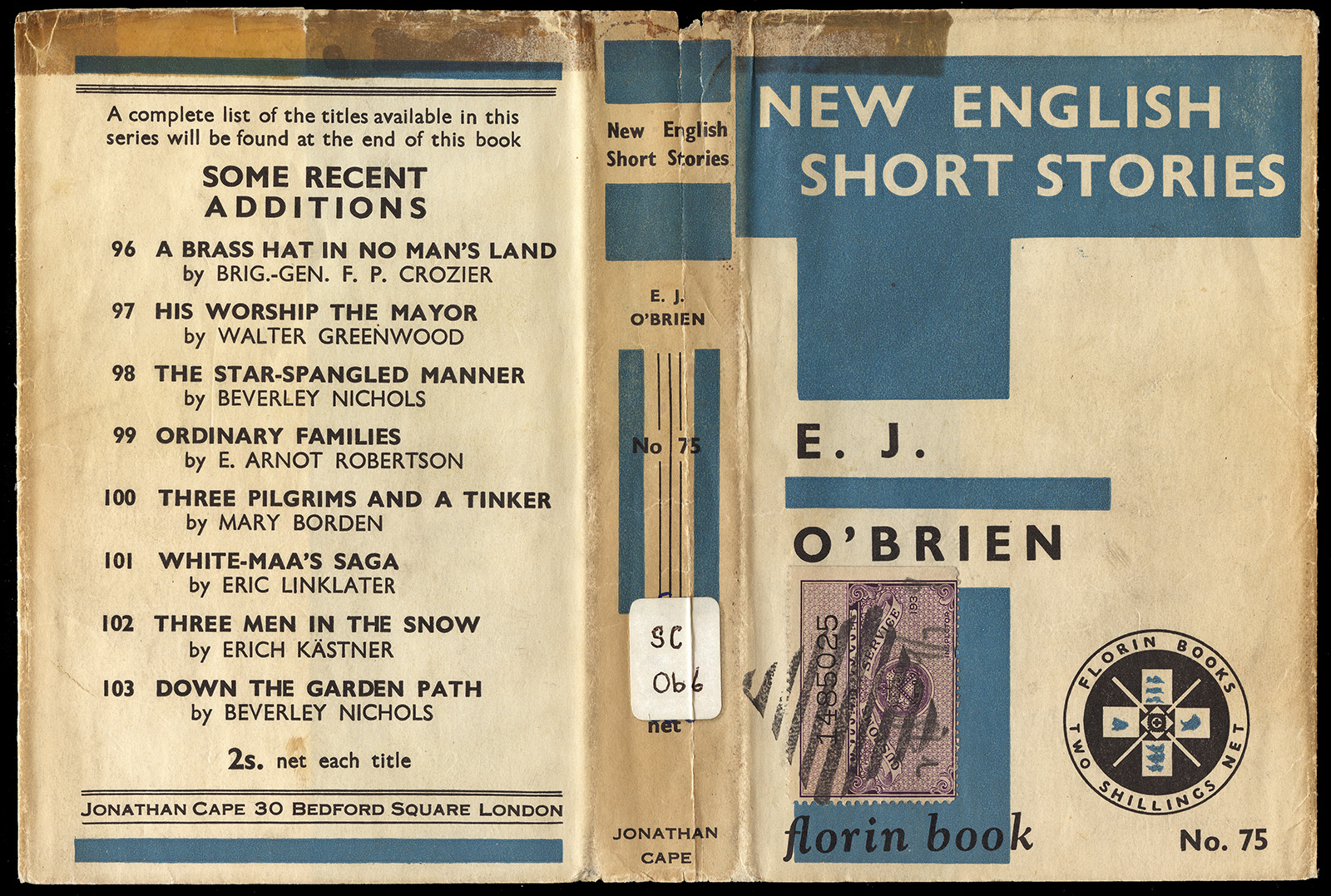 Perhaps the book fell out of someone’s bag or luggage, or it was left on a seat in a departure lounge, and turned in to lost and found. As it likely belonged to one of the travelers, a well-meaning customs officer stamped it on the front so as to be noticeable, ensuring that it would be considered to be a passenger’s property, hopefully to be claimed on-board or at the destination.
