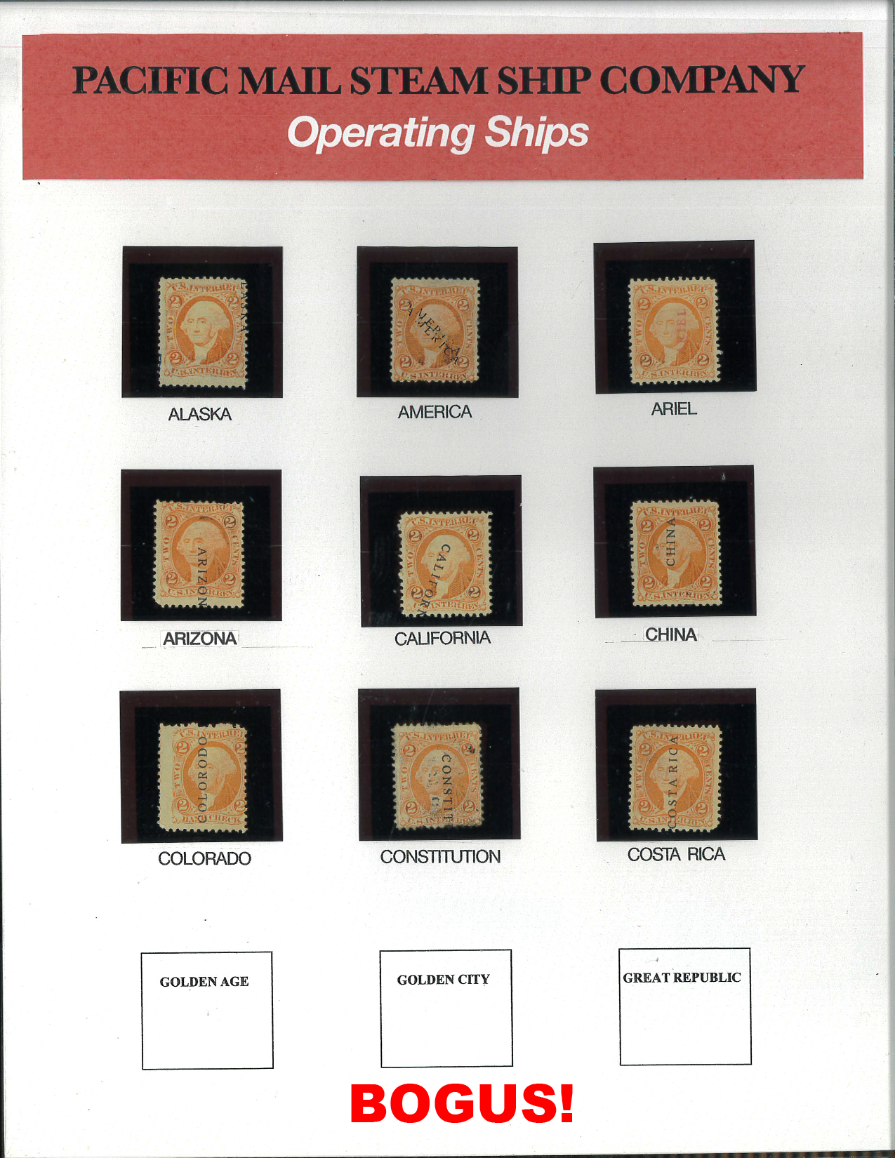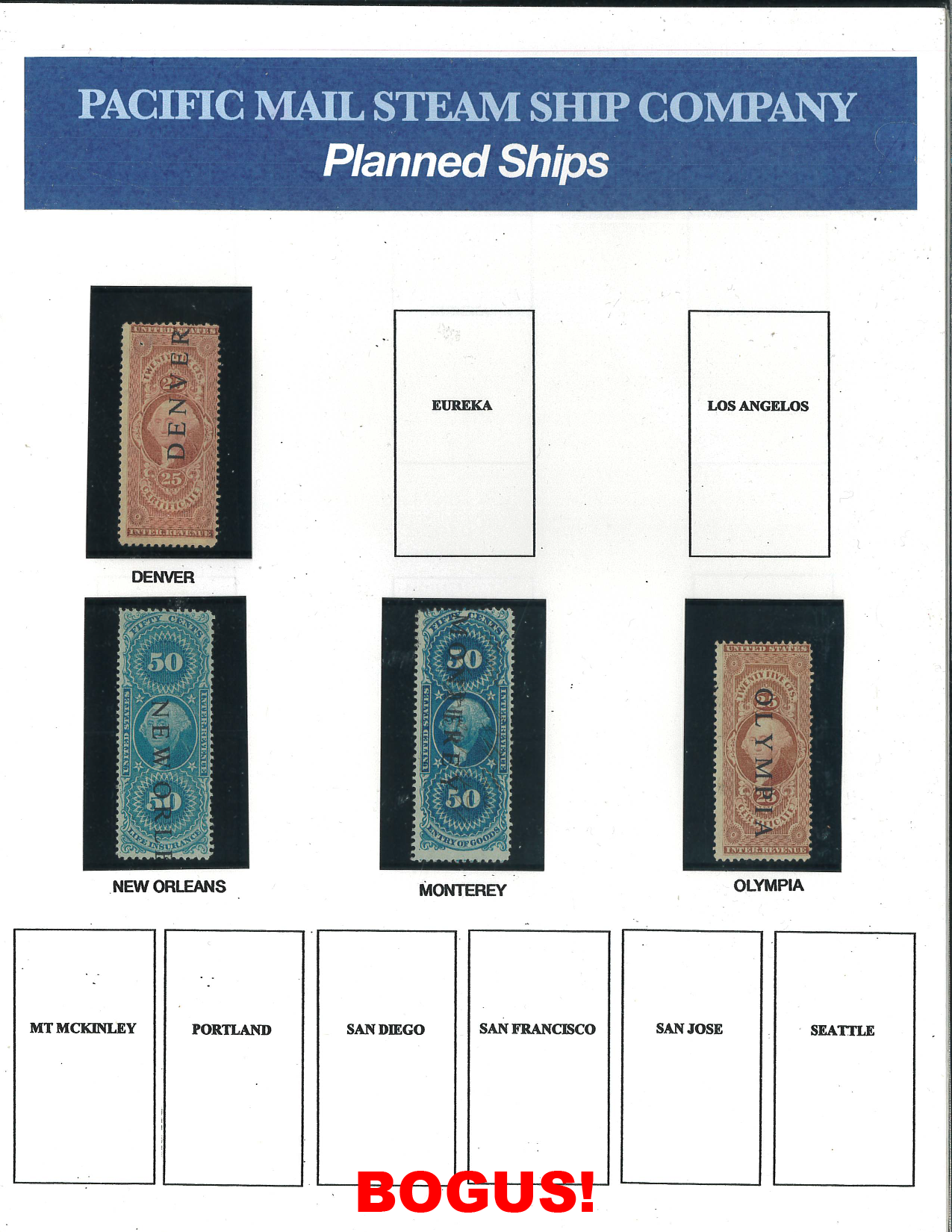 Bogus Pacific Mail Steamship Cancels in Upcoming Siegel Auction