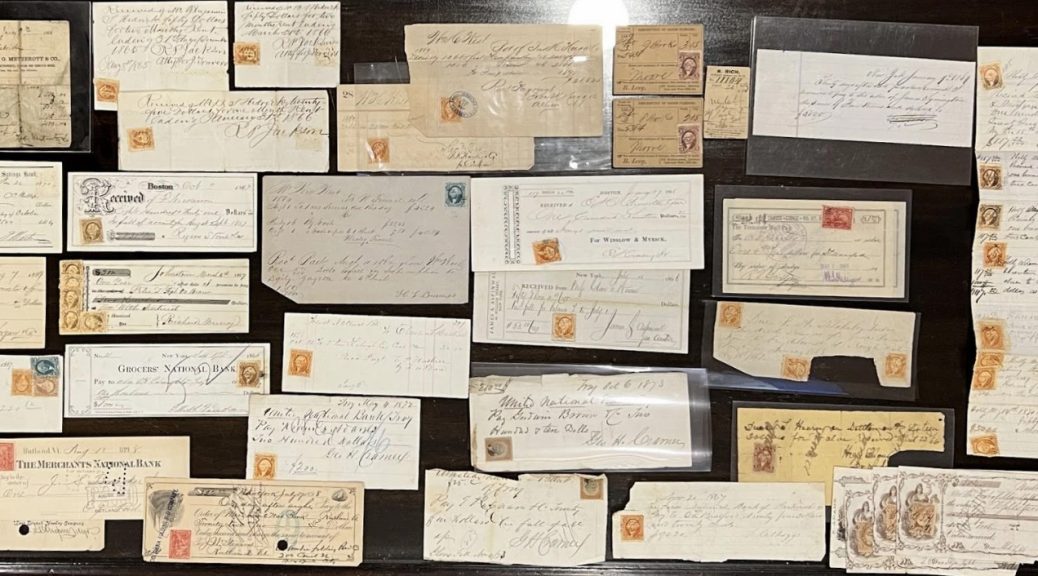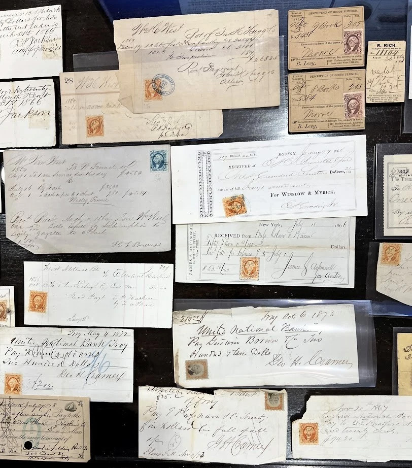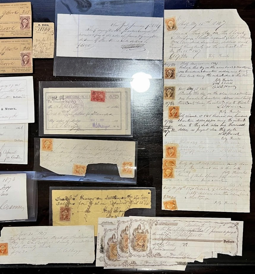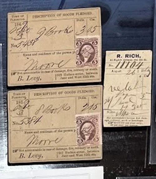 The items of particular interest are not one, but two pawn tickets, extremely scarce document types. My (unpublished) census is less than 20 total reported documents from the Civil War tax period.